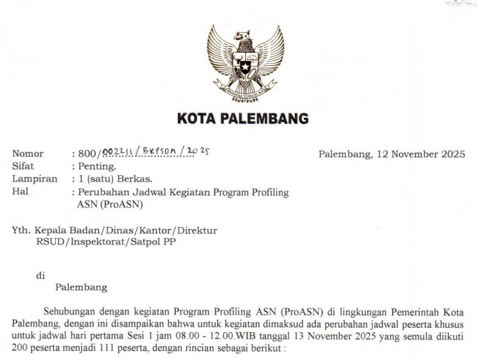 PENGUMUMAN JADWAL PEMBAGIAN SK PPPK PEMERINTAH KOTA PALEMBANG TAHAP 2 TAHUN 2025