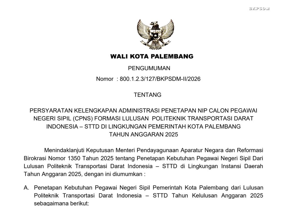 PENGUMUMAN TATA CARA PELAKSANAAN MUTASI DI LINGKUNGAN PEMERINTAH KOTA PALEMBANG .....